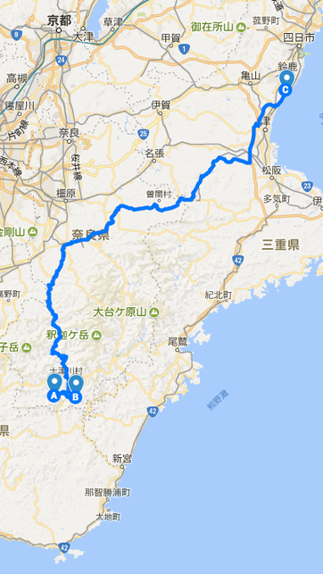 2度目は海岸沿いから十津川村までの真ん中あたりの山の中(熊野に入る少し前)。